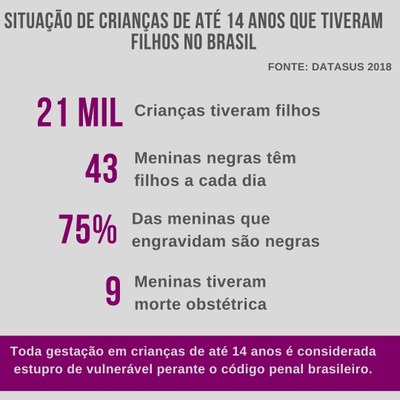Em média, seis meninas entre 10 e 14 anos são internadas todos os dias no Brasil para fazer aborto após terem sido estupradas, segundo os dados do Anuário Brasileiro de Segurança Pública (2019). Em 2020, até o momento, o país registrou 642 abortos decorrentes de gravidez precoce, resultando em abortos, sejam espontâneos ou realizados em hospitais.
